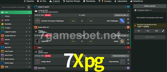 O 7Xpg oferece uma grande seleção de opções de apostas em e-sports com probabilidades competitivas